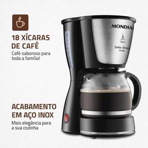 Comece seu dia com aroma e sabor! A Cafeteira Eletrica Mondial Dolce Arome C-30-18X tem capacidade para servir ate 18 xicaras de cafe. Possui filtro permanente e porta filtro removivel que proporcionam mais sustentabilidade ao meio ambiente. Para conservar a temperatura, conta com jarra de vidro e base com aquecimento. Com design elegante e compacto, e ideal para valorizar o seu cantinho do cafe.