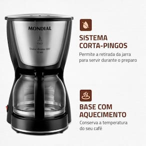 Comece seu dia com um café saboroso e quentinho! A Cafeteira Elétrica Mondial Dolce Arome C-32-32X tem capacidade para servir até 32 xícaras de café. Possui filtro permanente e porta-filtro removível que proporcionam mais sustentabilidade ao meio ambiente. Para conservar a temperatura, conta com jarra de vidro e base com aquecimento. Com design elegante e compacto, é ideal para valorizar sua cozinha.