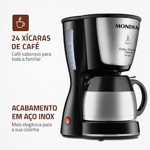 A Cafeteira Elétrica Dolce Arome Thermo C-33-JT-24X pode preparar até 24 xícaras de café com muita praticidade. Possui filtro permanente e porta-filtro removível que proporcionam mais sustentabilidade ao meio ambiente. Conta com jarra térmica em inox que mantém o café quentinho por mais tempo, além da base com aquecimento. Seu design elegante é ideal para valorizar sua cozinha.