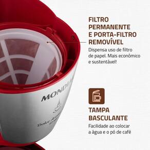 FILTRO PERMANENTE E PORTA-FILTRO REMOVÍVEL: A cafeteira dispensa a utilização do filtro de papel. Além de economizar, você ainda torna o seu dia a dia mais sustentável.