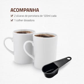 LINDA E NA MEDIDA CERTA: Acompanha 2 xícaras de 120ml cada e 1 colher dosadora.