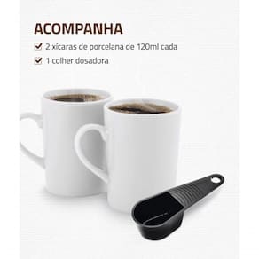 Acompanha xícaras e colher dosadora para preparo perfeito