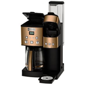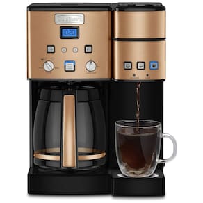 Jarra de vidro de 12 xícaras com alça livre de BPA e aço inoxidável Controle da intensidade da infusão selecione negrito para obter um sabor mais forte do café O filtro de café de tom dourado permite que apenas o sabor puro do café flua Café Garrafa. O centro Cuisinart Coffee apresenta uma cafeteira totalmente automática para 12 xícaras de um lado e uma cafeteira de serviço único, por outro. Bebendo sozinho ou servindo uma multidão, é fácil apreciar o sabor gourmet que você espera de uma cafeteira Cuisinart. É uma cafeteira que faz o trabalho de duas, libera mais espaço no seu balcão