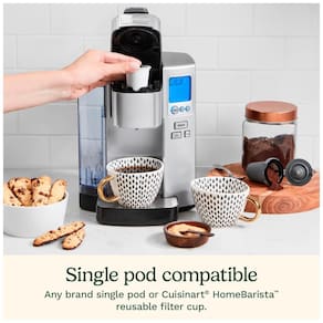 O fabricante compatível com K Cup fabrica um copo de cada vez, compatível com qualquer marca de cápsula de copo único, incluindo as cápsulas Keurig K Cup. Comprimento do cabo 81cm 5 tamanhos de bebidas 118ml 355ml, reservatório de água removível de 2,1L, filtro de água de carvão O botão de água quente permite que você aprecie café instantâneo, sopa, chá e chocolate quente O recurso de enxágue limpa instantaneamente o interior da câmara de infusão Tipo de material Plástico. Verifique o guia do usuário para obter mais esclarecimentos Totalmente programável com uma gama completa de recursos, incluindo Auto On , Off e controle de temperatura ajustável. Não limpe a bandeja coletora com produtos de limpeza, almofadas de lã de aço ou outros materiais abrasivos. O Cuisinart Premium Single Serve Brewer oferece liberdade de escolha Escolha os tamanhos de porção de 118ml, 177ml, 236ml, 295ml ou 355ml, escolha a temperatura ideal e desfrute de uma xícara de café, chá, sopa ou cacau. Este fabricante de cerveja é compatível com K Cup e também inclui um copo de filtro reutilizável HomeBarista para sua bebida favorita. A bandeja de gotejamento é puxada para acomodar canecas de viagem e o reservatório de água de 700ml elimina a necessidade de recargas frequentes Consulte o manual de instruções antes de usar. capacidade Cuisinart Premium Single Serve Brewer é uma unidade de preparação de café totalmente programável e versátil, ideal para uso pessoal e divertido, tornando a perfeita para qualquer residência. Compatível com qualquer marca de cápsula de copo único, incluindo cápsulas Keurig K Cup e equipada com a xícara de filtro reutilizável HomeBarista , esta cafeteira facilita mais do que nunca os consumidores a desfrutar de uma ampla variedade de bebidas quentes. A unidade possui cinco configurações diferentes de tamanho de xícara variando de 10 a 30 gramas e uma temperatura de infusão ajustável para garantir que as temperaturas desejadas sejam atingidas. Além do café, um botão de água quente pode ser para preparar sopa, chá, chocolate quente e muito mais, e a unidade está equipada com uma função de enxágue para facilitar a limpeza