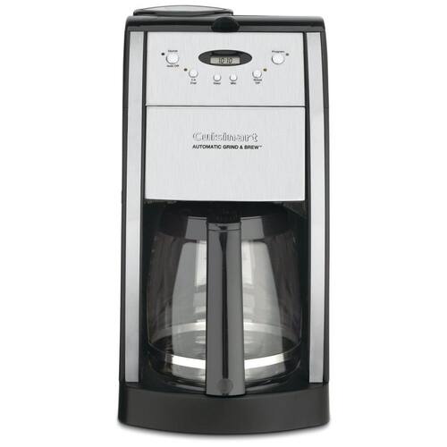 Programabilidade 24 horas com jarra de vidro de 12 xícaras, com alça ergonômica, bico anti gotejamento e proteção para juntas Moe o grão inteiro antes de preparar o café, produzindo café fresco e saboroso. Recurso de moagem para café pré moído Recurso de pausa na fermentação, desligamento automático de 0 a 4 horas e recurso de 1 a 4 xícaras Inclui filtro tom dourado e filtro de água de carvão que remove impurezas Câmara do moedor e área de filtro separadas facilite a limpeza Verifique se o botão de configuração 1 4 está pressionado. Essa configuração faz uma xícara de café mais forte devido ao processo de fermentação mais lento. A câmara do moedor e a área do filtro separadas facilitam a limpeza. Retire o despertador e acorde com o rico aroma de café acabado de moer com a máquina de café Cuisinart Grind Brew Automatic. Uma das séries Premier, este modelo de luxo de 12 xícaras oferece o melhor da tecnologia de cafeteria especialista da Cuisinart para oferecer facilidade de uso inigualável e sabor de café encorpado. Com um estilo europeu simplificado e uma jarra graciosa, é um belo complemento para qualquer cozinha. A cafeteira Grind Brew apresenta um conjunto de moagem separado e uma câmara de filtro para facilitar a adição de grãos e o uso de áreas fáceis de remover. Um conveniente controle de moagem desliga a máquina quando é café pré moído. Uma boa adição a qualquer cozinha moderna, esta cafeteira automática de 12 xícaras mói automaticamente grãos inteiros logo antes da fermentação para produzir um pote de café fresco e saboroso. A unidade totalmente programável por 24 horas permite café despertar, além de sua função de pausa na fermentação simplifica o desfrute de uma xícara de café antes do final do ciclo de fermentação. A jarra de vidro de 1,7 litros incluída oferece uma alça ergonômica, uma proteção para as juntas e um bico de vazamento sem gotejamento para servir com elegância. Outros destaques incluem desligamento automático ajustável por até quatro horas, uma opção de retificação, um filtro de água de carvão para remover impurezas e uma câmara de retificação e uma área de filtro separadas para garantir uma limpeza simples. Instalada em um elegante estilo italiano. Um filtro de água a carvão e um filtro de café de tom dourado permanente, de estilo , permitem que apenas o sabor puro flua, e o popular recurso de pausa na fermentação permite que você espreite uma xícara antes do término do ciclo. Peças laváveis na máquina de lavar louça. Moagem separada e câmaras de filtro para limpeza fácil. O café mais fresco do lado de fora de uma cafeteria. O que mais um amante de café poderia ter Tampa do reservatório. Vira para trás para facilitar o enchimento, Removível para facilitar a limpeza. Um sistema de intertravamento de segurança impede a operação da unidade se a tampa do reservatório estiver aberta. Distribui a água uniformemente sobre o café, reduzindo a perda de temperatura à medida que a água passa pelo solo. Compartimento do cesto do filtro. Contém o cesto do filtro, a tampa do cesto do filtro e o filtro de estilo Cuisinart, em tom de ouro. Pausa de fermentação Interrompe o fluxo de café da cesta quando a jarra é removida da placa de aquecimento para que um copo possa ser derramado no meio da fermentação, se desejado Placa de aquecimento Resistente a arranhões com revestimento antiaderente. A jarra de 12 xícaras, fácil de lavar e sem gotejamento, possui uma alça ergonômica e marcas de café para duas a doze xícaras Medição de colher e pincel 4. Filtros de papel de cesta