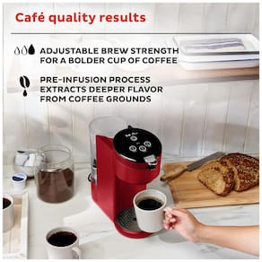 PROJETADO PARA CAFÉ MOÍDO Quando colocado no Instant Solo, nossa cápsula reutilizável especialmente projetada ativa um processo de fabricação exclusivo que extrai mais sabor, aroma e corpo do seu café moído favorito CICLO DE PRÉ INFUSÃO Embebe suavemente o pó em um K Cup ou na cápsula reutilizável antes de preparar para produzir uma xícara de café mais saborosa ADEQUAR CADA DEPOIMENTO Intensidade de infusão ajustável para que você possa fazer uma xícara de café mais ousada PREPARAÇÃO MAIS RÁPIDA Prepara uma única xícara em apenas 90 segundos VÁRIOS TAMANHOS DE CERVEJA Lida com vários tamanhos de cerveja xícara de 236, 295 e 354 mL FAÇA MAIS, RECARREGUE MENOS Reservatório removível grande de 1,1 litro DESIGN DE ECONOMIA DE ESPAÇO Cabe facilmente em uma bancada CANECA DE VIAGEM Adapta se a caneca de viagem de até de altura 473 mL com a bandeja de gotejamento removível INTERFACE AMIGÁVEL DO USUÁRIO Os botões do sensor de toque plano oferecem controle intuitivo fácil