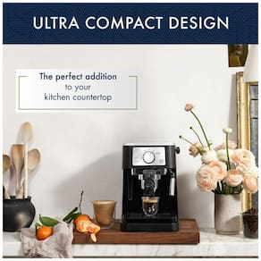 Leve a autêntica experiência de espresso para casa com a Stilosa. Prepare lattes, cappuccinos e espressos no conforto da sua casa. Design Contemporâneo e Compacto O complemento perfeito para a bancada da sua cozinha moderna, sem ocupar muito espaço, além de ser fácil de limpar. Bomba de 15 BAR A pressão ideal para extrair um expresso simples ou duplo, para que sua bebida de café saia perfeitamente rica. Batedor de leite manual Texturize seu leite com facilidade para criar um autêntico cappuccino, latte ou branco plano. Caldeira de Aço Inoxidável Design robusto, construção durável desta caldeira é projetada para durar mais e trabalhar por anos com desempenho consistente. Inclui porta um filtro e 2 filtros Uma porta um filtro ergonomicamente projetada possui 2 filtros, para café expresso simples ou duplo. Porta copos de 2 níveis permite que você use uma variedade de tamanhos de xícaras para que você possa tomar o máximo ou o mínimo de café expresso que desejar. Componentes incluídos Acessórios incluídos Portafiltro, colher de medição, tamper, filtro de cápsula simples e dupla