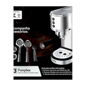 A Cafeteira Espresso EOS ECF01EC combina design moderno em inox, alta performance e versatilidade em um só produto. Com bomba de pressão italiana de 19 bar, entrega um espresso encorpado em até 25 segundos, com cremosidade e aroma marcantes. Além disso, é 3 em 1: prepara café espresso simples, duplo ou manual, e é compatível com cápsulas Dolce Gusto, Nespresso e café moído. Conta ainda com espumador de leite integrado, ideal para lattes, cappuccinos e outras receitas especiais. - Café pronto em até 25 segundos com bomba italiana de 19 bar - Compatível com cápsulas Nespresso, Dolce Gusto e café moído - Espumador de leite integrado: mais sabor e cremosidade para suas bebidas - Design em inox: moderno, resistente e elegante - Tanque tamanho família de 1L: praticidade no dia a dia - Transforme-se em um verdadeiro barista sem sair de casa!