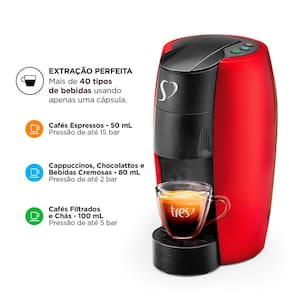 A Cafeteira Espresso LOV TRES, 3 Corações, Vermelha é ideal para qualquer hora do dia! Ela é automática, ou seja, controla o fluxo de água, a temperatura e a pressão sozinha, garantindo a bebida perfeita. Também é multipressão e com extração silenciosa garante cafés espressos perfeitos, bebidas cremosas, cafés filtrados e chás ao simples toque de um botão. Além disso, o produto conta com tecnologia Caffitaly e um design moderno, compacto e funcional que combina com qualquer ambiente e permite adaptar a grade conforme o tamanho da xícara utilizada.E para deixar seu lar ainda mais completo, confira nossas categorias de Eletrodomésticos e Utilidades Domésticas