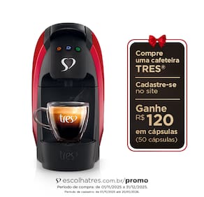 -Funções: Prepara espressos, cappuccinos, bebidas cremosas, cafés filtrados e chás naturais; -Operação: Simples operação com toque de um botão; -Compartimento interno para até 5 cápsulas usadas; -Sistema multipressão para diferentes tipos de bebidas; -Cápsulas e Máquinas do sistema TRES® livres de BPA; -Variedade de Bebidas: Prepara uma ampla gama de bebidas, incluindo cafés espressos, filtrados, cappuccinos, bebidas cremosas e chás.Infelizmente não temos estoque do produto que você está procurando no momento.
