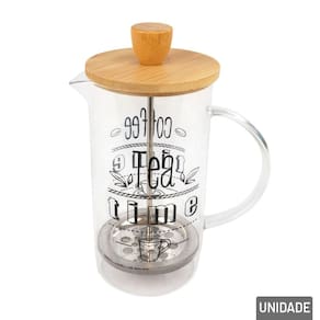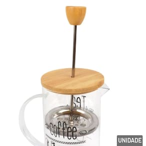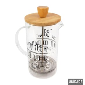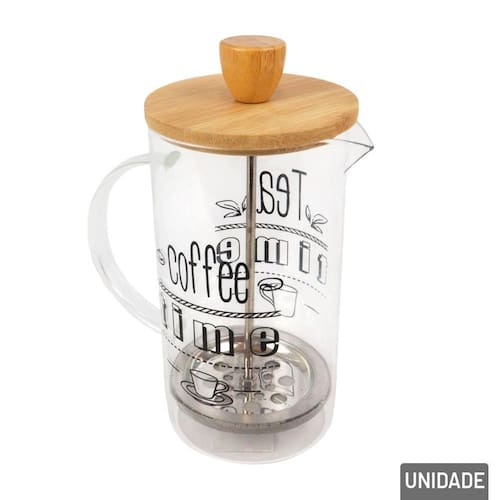 Cafeteira Francesa Prensa de Vidro Bambu 600m Leve charme, sustentabilidade e sabor apurado ao seu ritual de café com a Cafeteira Francesa de 600ml. Com um design refinado que une vidro de alta resistência, prensa em aço inox e uma elegante tampa de bambu natural, essa prensa francesa é perfeita para quem valoriza estilo, funcionalidade e uma experiência de preparo artesanal.\nIdeal para cafés especiais, chás e infusões, esse modelo combina estética minimalista com materiais duráveis e ecológicos, tornando-se uma excelente opção tanto para o uso diário quanto para presentear amantes da boa bebida. Basta adicionar o pó de café, água quente, aguardar a infusão e pressionar o êmbolo. Não utiliza energia elétrica nem filtros descartáveis, contribuindo para um preparo mais ecológico.\nEspecificações: Marca : TINGS\nTipo de material : Bambu, Inox, Vidro\nCores ou Estampa : Transparente, Bege\nDimensões do Produto : 19 X 14 X 9 CM\nDimensões da Embalagem : 19,5 X 14 X 10 CM\nPeso Bruto (Gramas) : 0.379