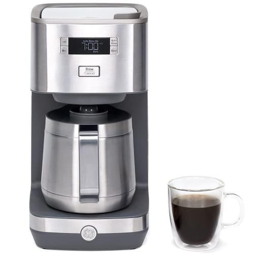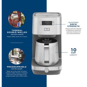 GE Cafeteira de gotejamento com temporizador | A jarra térmica de 10 xícaras mantém o café quente por 2 horas | Força de fermentação ajustável | Chuveiro largo para o máximo sabor | Essenciais de