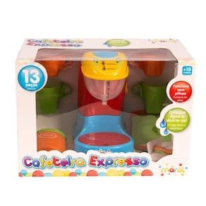 Cafeteira expresso para as crianças brincarem de faz de conta. com reservatório para água, botão liga e desliga....sai água de verdade para tornar a brincadeira mais divertida. com 12 utensílios, incluindo 02 canecas, 02 xícaras, 02 pires, 01 açucareiro com tampa e 04 colheres.desenvolvimento: coordenação entre olhos e mãos.coordenação motora fina - mãos e dedos.atenção e concentração.compreensão de causa e efeito.curiosidade e descoberta.imitação.dimensões aproximada do produto(cm) - a x l x c: 25x33x18dimensões aproximadas da embalagem (cm) - a x l x c: 25x33x18peso: 0,340 kgcertificação: cebri/innac00877001 nm300/2002 ocp0061