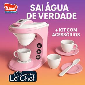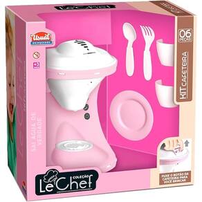 Cafeteira de Brinquedo Infantil que Solta Água com Xícaras e Talheres Le Chef UsualA Cafeteira de Brinquedo Infantil Le Chef da Usual é perfeita para deixar a brincadeira de faz de conta ainda mais divertida e realista. Com um design encantador, ela solta água de verdade, simulando o preparo do café e proporcionando uma experiência interativa para as crianças. O kit acompanha xícaras e talheres, permitindo montar uma mini cozinha completa. Feita com material resistente e seguro, é fácil de manusear e ideal para estimular a imaginação, criatividade e coordenação motora durante as brincadeiras. Uma ótima opção para presentear e incentivar o brincar educativo.Especificações:Fabricante: Usual BrinquedosReferencia: 743Modelo: Kit Cafeteira com Acessórios Le ChefComposição: Polipropileno (pp)Indicado para crianças maiores de 3 anosINMETRO: Compulsório 006566/2019Item Incluso:1x Cafeteira2x Talheres2x Pratos2x Xícaras
