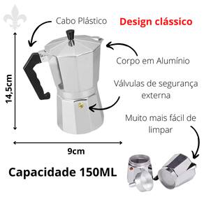 A Cafeteira Italiana além de prática, dispensa o uso de filtros de papel. Produzida em aço inox traz mais durabilidade e resistência. Com capacidade de 150 ml, para 3 xícaras. Como usar: