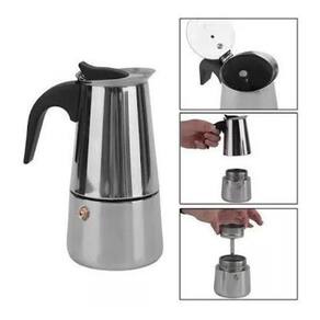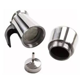 Cafeteira tipo italiana em alumínio especial polido com filtro permanente metálico. Sabor com praticidade, elegância e estilo, sirva café quentinho em 5 minutos. Alça antitérmica, não transmite calor. Possui válvula de segurança. Lavar à mão com água e sabão, ou na máquina de lavar louça. Instruções de uso: Encha o recipiente inferior com água fria e filtrada até o limite abaixo da válvula de segurança. Coloque o funil já preenchido com café de moagem média para grossa, não compactar o café pois isso dificultará a passagem do vapor d'água. Rosqueie a parte superior do recipiente sobre a base. Coloque ao fogo e aguarde que a água ferva e o café comece a sair no pino central. Quando a parte superior da cafeteira estiver cheia, retire do fogo. Antes de servir mexa com uma pequena colher para uniformizar a mistura. Não possui manual. Capacidade 450 ml. Faz 9 xícaras de cafezinho de 50 ml. Diâmetro 11 cm, altura 23 cm. Peso 615 g. Ean: 7899755683148