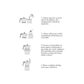 Fazer café com a cafeteira italiana é muito simples Em poucos instantes o café estará pronto para ser consumido. É bom lembrar que para a boa qualidade do café é melhor que se aqueça o produto em fogo baixo. Esta cafeteira prepara até 6 xícaras de café. O café preparado na cafeteira italiana é extremamente respeitado e produz um gosto característico que revela uma das mais simples e saborosas maneiras de se fazer café. O formato desta cafeteira é tradicional e preserva todo o gosto e tradição do café preparado originalmente.