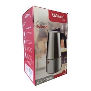 Cafeteira Italiana 6 Xícaras Cafeteira italiana 6 xícarasCafeteira italiana 6 xícaras em aço inox - wellmixa cafeteira é perfeita para se fazer uma saboroso café. Ela tem um ótimo acabamento. Sua funcionalidade é excelente e sua praticidade não deixa nada a desejar. É só usar a primeira vez para não querer mais usar outras similares nas horas mais importantes do dia a dia. Ótimo cafeteira para presentear. Bem pratica, leve em viagens , irá te poupar de carregar mutos vasilhas para fazer o café, basta uma.Possui válvula de segurança.Não precisa de filtro de papel nem de tecidoprática de usar e fácil para limparfeita em inox.Capacidade aproximada - 300ml.Serve 6 xícarasCompletamente desmontável para limpeza inox polidoResistente e durávelMedidas: altura 19cm largura 10cmTodas as informações divulgadas são de responsabilidade do fabricante/fornecedor.Imagens meramente ilustrativas.Contém 1 unidadeComposição: inox e plásticoFicha técnica- Material da estrutura: Aço inoxidável- Com emissão de vapor: Não- Tempo de preparação: não informado pelo fabricante- Com indicador de água: Não- Tipo de filtro: Permanente- Inclui temporizador: Não- Potência: não- Tecnologia: Manual- Com função de aquecimento de canecas: Não- Modelo alfanumérico: não- voltagem: Não se aplica- Capacidade de canecas: 6 xícaras- Cor principal: Cinza- Inclui bandeja coletora removível: Não- Modelo detalhado: Cafeteira italiana 6 xícaras- Com dispositivo de antigotejamento: Não- Capacidade de água: 250ml- Pressão: não informado pelo fabricante- Tipo de cafeteira: Italiana Marca: Shopbr