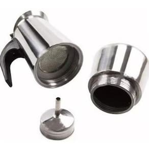 Instruções de uso: Encha o recipiente inferior com água fria e filtrada até o limite abaixo da válvula de segurança. Coloque o funil já preenchido com café de moagem média para grossa, não compactar o café pois isso dificultará a passagem do vapor d'água. Rosqueie a parte superior do recipiente sobre a base. Coloque ao fogo e aguarde que a água ferva e o café comece a sair no pino central. Quando a parte superior da cafeteira estiver cheia, retire do fogo. Antes de servir mexa com uma pequena colher para uniformizar a mistura.