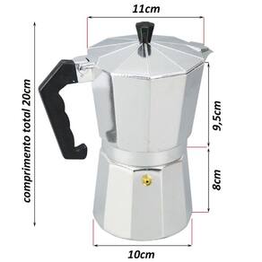 • Serve até 9 xícaras • Volume: 450ml • Com válvula de segurança • Dispensa o uso de filtro para coar • Prática e fácil de usar e limpar • Cabo resistente ao calor • Feita em alumínio especial