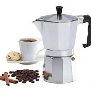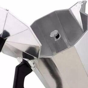 Cafeteira Italiana, você prepara seu café de maneira mais Fácil, Rápida, Pratica, Gostosa e Inteligente. Fazer café com a cafeteira italiana é muito simples Basta que você adicione água na parte inferior da cafeteira até a válvula de escape, adicione café na parte do meio (b -filtro) e ponha ao fogo. Em poucos instantes o café estará pronto para ser consumido. É bom lembrar que para a boa qualidade do café é melhor que se aqueça o produto em fogo baixo. Esta cafeteira prepara até 9 xícaras de café sem ser necessário a aquisição de cafeteiras elétricas de preço elevado. O café preparado na cafeteira italiana é extremamente respeitado e produz um gosto característico que revela uma das mais simples e saborosas maneiras de se fazer café. O formato desta cafeteira é tradicional e preserva todo o gosto e tradição do café preparado originalmente. - Alumínio Polido de Excelente Qualidade; - Válvula de Proteção; - Completamente Desmontável Para Limpeza; - Produto Altamente Resistente e Durável; - Borrachas de Vedação e Filtros em Alumínio de Excelente Qualidade; - Design Clássico Tradicional;