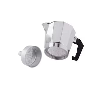 Cafeteira Italiana Café Expresso - Capacidade para 6 Xícaras (300ml)Prepare seu café de forma simples e eficaz com a cafeteira italiana, conhecida por seu método de preparação tradicional e capacidade para até 6 xícaras (aproximadamente 50ml cada), você terá café expresso na medida certa.Processo de Preparação:A água ferve na base da seguida, ela passa pelo pó de café que está no café pronto sobe para o recolhedor, pronto para ser servido, livre de resíduos.Características:Válvula de segurança ão requer filtro de papel ou ática de usar e fácil de limpar.Fabricada em alumínio grosso e equipada com com filtro e funil incluídos.Especificações:Capacidade: 300 mlRende até 6 xícaras de café (aproximadamente 50 ml por xícara)Dimensões: Altura da cafeteira - 15 cmIdeal para quem busca qualidade e praticidade na hora de preparar um autêntico café expresso!