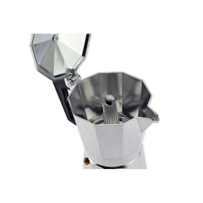 Cafeteira Italiana para 6 XícarasO funcionamento da cafeteira é muito simples, coloque água no compartimento inferior e o café em pó no centro, o vapor produzido pela água quente pressiona a água pelo filtro onde fica o pó. Em poucos minutos, o compartimento superior recebe a bebida já pronta, o resultado é um café espesso, gostoso e muito saboroso.Capacidade para 6 xícaras de café ou total de 300 mlCompletamente desmontável de fácil limpezaRecomendações:- Fazer o café em fogo baixo- Preencha o recipiente caldeira com água até a altura da válvula- Coloque o pó de café no funil sem compactá-lo- Apague o fogo após o fim do preparo.Informações do Produto:- Produzido em alumínio - Alça reforçada e ergonômica- Garantia contra defeitos de fabricação 3 meses- Capacidade total da cafeteira 300 ml- Dimensões aproximadas em cm: altura 18 x 10 diâmetro - Conteúdo da embalagem: 1 unidade