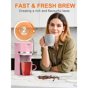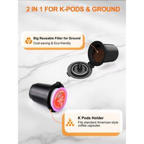- ?Preparação de 2 maneiras?A cafeteira de dose única Karosie é compatível com cápsulas K e café moído, o que satisfaz as diversas necessidades de sabor dos amantes de café. Com uma capacidade de preparação de 170 a 340 g, possui uma operação de um botão que prepara rapidamente uma xícara fresca de café quente. Ótimo para manhãs caóticas quando você precisa de cafeína o mais rápido possível