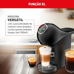 Nescafé Dolce Gusto Arno Genio S Plus Multibebidas Digital Automática Preta – DGS2 Aproveite uma experiência completa de sabor e praticidade com a cafeteira Nescafé Dolce Gusto Genio S Plus. Compacta e elegante, ela prepara mais de 50 tipos de bebidas quentes e frias com qualidade profissional, graças à pressão de até 15 bars e ao sistema digital de fácil operação. Com regulagem de temperatura em quatro níveis, função Espresso Boost para cafés mais intensos e Função XL para bebidas extragrandes de até 300 ml, você personaliza cada preparo ao seu gosto. O tanque removível de 0,8L facilita o reabastecimento e a limpeza, enquanto o desligamento automático após 1 minuto de inatividade garante economia de energia (classificação A+).