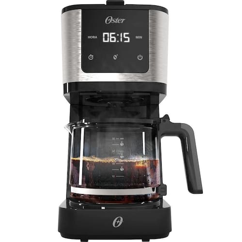 A Cafeteira Oster OCAF550 traz praticidade e tecnologia para sua rotina. Com capacidade de 1,2L, prepara até 30 cafezinhos de uma só vez, sendo ideal para famílias ou para quem adora receber visitas. Seu display digital com timer programável permite agendar o preparo com antecedência inclusive à noite, para que o café esteja pronto pela manhã. Assim, você garante café fresco sempre na hora certa.
