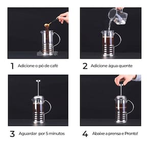Desfrute do prazer de fazer café fresco em casa com esta cafeteira prensa francesa de 350ml. Ela permite que você extraia todo o sabor dos grãos de café moídos, resultando em uma bebida rica e aromática.