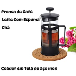Cafeteira Prensa Francesa Cremeira 350 Café Chá Em Vidro Preta Para quem valoriza um café mais encorpado e aromático, preparado de forma prática e sem eletricidade. Com design elegante e compacto, ela é perfeita para uso individual ou para servir até 3 xícaras pequenas. Sua estrutura combina jarra em vidro borossilicato resistente ao calor com partes em aço inoxidável, garantindo durabilidade, térmica e um visual moderno. A alça ergonômica, feita em baquelite e plástico espesso, oferece conforto e proteção durante o manuseio, mesmo com a bebida quente. O preparo é simples: basta adicionar café de moagem média a grossa e água quente na jarra, aguardar alguns minutos e pressionar o êmbolo para separar o pó da bebida. O sistema de filtro com tela metálica inox permite a passagem dos óleos naturais do café, entregando uma bebida mais intensa, com textura rica e sabor marcante. Com capacidade de 350?ml, é ideal para o consumo diário, em casa ou no trabalho. A cafeteira é fácil de limpar, sendo possível desmontar o êmbolo e lavar todas as partes com esponja macia e detergente neutro. Compacta, leve e funcional, a Cafeteira une praticidade e estilo, oferecendo uma experiência de café artesanal a qualquer momento do dia. Especificações:Dimensões: Alt.: 15cm x Diâmetro: 8cmMaterial: Borossilicato e PlásticoLitragem: 350mlCor: PretaPeso: 188g Contém:01 Cafeteira Francesa 350ml - Preta