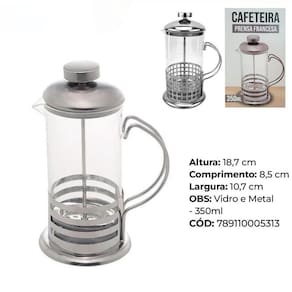 01 Cafeteira Prensa Francesa Cremeira Vidro Inox 350ml
