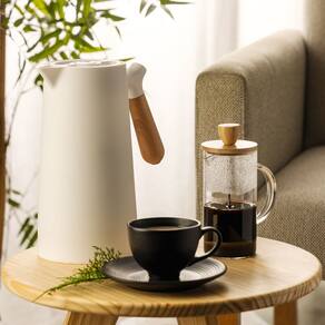 A Cafeteira prensa francesa da Wolff apresenta um design elegante e contemporâneo, com um corpo de vidro borossilicato que permite apreciar a cor e a textura do café durante o processo de preparo. A tampa de bambu adiciona um toque natural e refinado à peça.