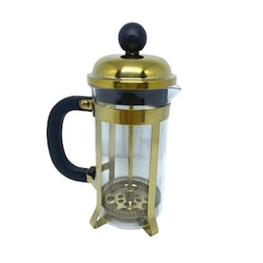 Esta linda Cafeteira Prensa Francesa Dourada Fineza é Produzida em aço inox de alto padrão e vidro borossilicato, mais forte e durável que o vidro convencional. O vidro possui baixo coeficiente de dilatação, tornando-o resistente à quebra, suporta tanto baixas quanto altas temperaturas -20 C a 180 C . Com capacidade para 350ml, esta linda cafeteira possui revestimento de Nitreto de Titanio PVD - não é pintura na sua parte de inox, portanto o dourado não sai e não descasca.