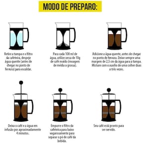 Ela possui um mecanismo muito simples com ótimo sistema de filtragem, que não deixará que o pó de café vaze, garantindo que você terá uma bebida forte mas sem sedimentos. A cafeteira francesa consiste de uma jarra e uma haste com um filtro anexado no final.