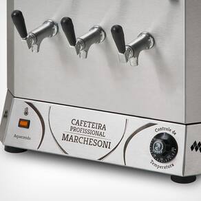 A Linha Profissional Marchesoni é fabricada com dois bojos, possibilitando servir dois tipos de bebidas simultaneamente, além de manter a temperatura e servir com praticidade. As cafeteiras da linha Profissional Marchesoni foram desenvolvidas para atender com segurança as maiores demandas no serviço de alimentação. Bojos em aço inoxidável 304 - material apropriado para contato com alimentos e bebidas; Resistências blindadas de alta performance; Exclusiva torneira horizontal, indicada para café e leite; Acompanha vareta para limpeza das torneiras; Termostato para controle de temperatura de 20ºC a 120ºC; Visor de nível para reservatório de água; Acompanha coador de pano; Ideal para manter a bebida aquecida; Indicadas para bares, padarias, restaurantes, cafeterias, lanchonetes, escolas, faculdades, indústrias e serviços de alimentação em geral. Modelo: CF.4.621/622 Capacidade: 12 litros 2 bojos de 6 litros cada ; Consumo: 2500W / 2,50kw/h; Alimentação: 127v ou 220v; Dimensões do Produto CxAxL : 42 x 65 x 36 cm; Dimensões da Embalagem CxAxL : 45 x 66 x 41 cm; Peso líquido: 12,8 kg; Peso bruto: 13,6 kg.