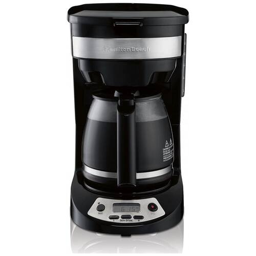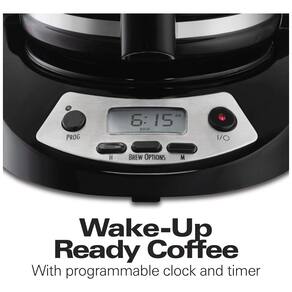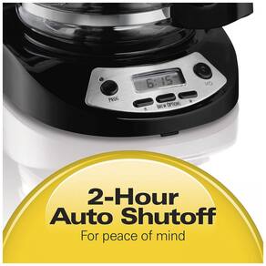 Cafeteira programável O relógio digital nesta cafeteira de gotejamento é fácil de programar e você pode definir o tempo de preparo com até 24 horas de antecedência para café pronto para despertar. Fácil de limpar a jarra de vidro borosilicato da cafeteira de 12 xícaras e a cesta de fermentação e limpeza são seguras para lava louças, a placa quente é antiaderente e fácil de limpar. Com desligamento automático de 2 horas, você não terá que se perguntar se deixou a panela ligada. Pausa automática e despeje esprema uma xícara durante o processo de fabricação de cerveja sem derramar. Café do seu jeito com Select A Brew esta cafeteira oferece a personalização de preparo que você precisa escolha entre Bold Regular ou 1 a 4 xícaras. Fácil de encher o reservatório de água é fácil de encher e possui uma janela de água que permite visualizar o nível de água na frente da cesta de cerveja do cervejeiro. Usa um filtro de café estilo cesta padrão. zenamento de cabos elimina emaranhados na bancada