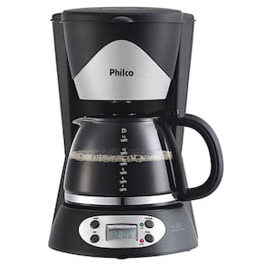 Ficha Técnica: Capacidade para 14 cafezinhos Painel com display digital, mostra o horário Função timer, programa o horário de preparo do café com até 24h de antecedência Detalhes em inox Acompanha colher dosadora Prática jarra de vidro, pode ser levada à mesa Filtro permanente e porta filtro removível Placa de aquecimento, mantém o café aquecido após o preparo Sistema corta-pingos Reservatório de água com graduação e capacidade para 700ml Disponível 220V Composição: plástico, metal e vidro Altura do produto: 27cm Largura do produto: 23,5cm Comprimento do produto: 17,5cm Peso do produto: 1,36kg