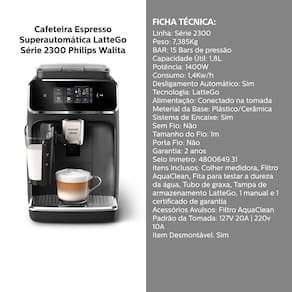 Cafeteira Espresso Superautomática LatteGo Série 2300 Philips Walita Cinza 1400W - EP2330