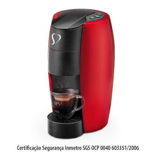 A Cafeteira de Espresso e Multibebidas Automática LOV TRES 3 Corações possui extração silenciosa que garante cafés espressos perfeitos, bebidas cremosas, cafés filtrados e chás ao simples toque de um botão. A LOV tem um compartimento externo para facilitar o descarte das cápsulas usadas e suporte para xícaras e copos long drink, que garante a praticidade na hora de preparar as suas bebidas preferidas na quantidade ideal.Com design inovador inspirado no grão de café, a LOV apresenta um estilo moderno e compacto. São 3 sistemas em uma única máquina! As cafeteiras 3 Corações tem garantia de 5 anos* e preparam cafés espressos, filtrados, cappuccinos, bebidas cremosas e chás com praticidade e perfeição! Escolha o que mais combina com você. Para cada estilo, uma máquina TRES. As Cápsulas e Máquinas do sistema TRES® são livres de BPA.Descrição TécnicaPressão: Multipressão 2 e 15 BarSistema de suprimento: CápsulaReservatório de Cápsula: ExternoConsumo: Em uso 13KW/H. Em repouso 1,2KW/HPotência: 1250WReservatório de água de 950mlTipos de bebidas: cafés espressos, cafés filtrados, cappuccinos, chocolatto, chás e café com leiteCom bandeja coletora de resíduos removívelMaterial plástico ABSCor/Estampa: Vermelha com detalhes em pretoDimensões: 29,5x16x20,3cm Instruções de uso:FÁCIL DE USARA LOV é uma máquina de café espresso automática, ou seja, ela controla o fluxo de água, a temperatura e a pressão sozinha, garante a bebida perfeita. Sua utilização é muito simples. Dá só uma olhada:1. Coloque água no reservatório e insira a cápsula no dispenser de cápsula.2. Adapte a grade de acordo com o tamanho da xícara utilizada e pressione a tecla correspondente.3. Pronto, em 30 segundos sua bebida estará pronta.Dica de Limpeza:Com a cápsula de retrolavagem que acompanha a cafeteira, você faz a limpeza de todo o sistema da máquina, eliminando os resíduos e assegurando o máximo de sabor e aroma das suas bebidas.É necessário fazer todos os dias os procedimentos de LIMPEZA DIÁRIA. As indicações específicas são tratadas na página 20 do manual.Faça a limpeza completa a cada 7 dias.Para limpar a superfície da máquina, use pano macio e detergente neutro. Não use jatos de água para limpar a máquina, nem utilize palha de aço ou esponja abrasiva.Os componentes de plástico da máquina não podem ser lavados na máquina de lavar louça.O que acompanha?1 Cafeteira Lov Tres Corações Vermelha1 Capsula de retrolavagem