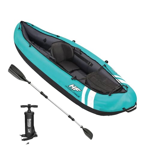 Marca: Bestway Referencia: 65118 Possui Válvula de rosca rápida de inflação / deflação Casco de nylon revestido, que é resistente ao sol, óleo e água do mar Acompanha 1 Assento ajustável 1 Saco de armazenamento removível Válvula de drenagem integrado Tábuas direcionadas moldadas Possui 3 Câmaras de ar Inclui 1 remo Acompanha Bomba manual Kit remendo de reparação a furos Capacidade do Caiaque: 1 Pessoa Peso suportado: 130 Kg Dimensões: 280 cm x 86 cm