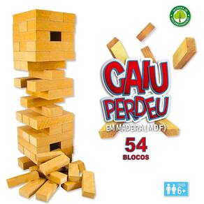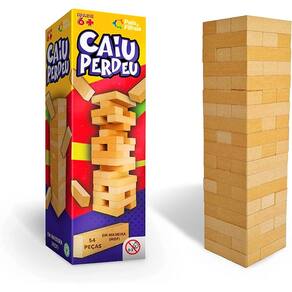 O jogo Caiu Perdeu da Pais e Filhos, é fabricado em madeira mdf de alta qualidade para garantir durabilidade e resistência durante seu uso. Para dar início ao jogo, uma torre com os blocos deverá ser montada, cada jogador retira um bloco de qualquer andar, vão empilhando por cima da torre de forma que ela crie novos andares e não perca o equilíbrio. Quanto mais a torre aumenta, mais divertida a brincadeira fica, perde o jogo quem deixar a torre cair primeiro. Esse jogo desenvolve a estratégia e a coordenação motora. Seja preciso nos movimentos, chame os amigos e embarque nesse desafio!