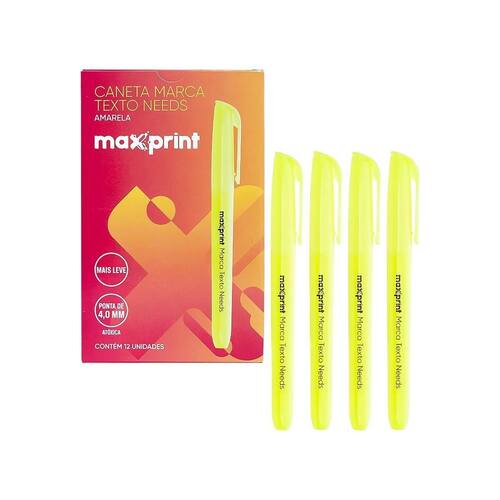 Caixa 12 Canetas Marca Texto Needs Maxprint Escolar Amarelo