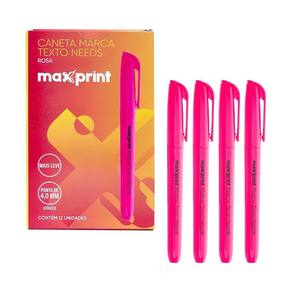 Caixa com 12 Canetas Marca Texto Lumis Rosa - Maxprint A Caneta Marca Texto Lumis da Maxprint é ideal para destacar e ressaltar textos em papel com cores fluorescentes de alta intensidade e excelente resistência à luz. Perfeita para estudos, escritório ou uso pessoal, garante maior visibilidade e organização dos seus materiais. Características Principais: Ponta chanfrada de 4,0 mm, permite traços grossos para destacar ou finos para sublinhar Cores fluorescentes vibrantes, proporcionando destaque eficiente Ponta macia e precisa, para um traço uniforme e sem esforço Tinta à base de água, segura e atóxica Composição: Corpo em resinas termoplásticas Tinta à base de glicol, corante e água Segurança e Certificação: Produto atóxico Quantidade: 12 Unidades Certificação INMETRO - Registro 006 215/2017 Não recomendado para crianças menores de 3 anos Informações Adicionais: Marca: Maxprint Modelo: Lumis Tipo de ponta: Chanfrada de poliéster Cor da tinta: Rosa Expressura do traço: 4,0 mm Código do produto: 1084052 Código de barras: 7897975002053 A Caneta Marca Texto Lumis Rosa é uma excelente escolha para estudantes, profissionais e qualquer pessoa que queira destacar informações importantes com facilidade, elegância e cores intensas. Marca: Não Informado