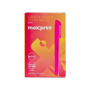 Caixa com 12 Canetas Marca Texto Lumis Rosa - Maxprint A Caneta Marca Texto Lumis da Maxprint é ideal para destacar e ressaltar textos em papel com cores fluorescentes de alta intensidade e excelente resistência à luz. Perfeita para estudos, escritório ou uso pessoal, garante maior visibilidade e organização dos seus materiais. Características Principais: Ponta chanfrada de 4,0 mm, permite traços grossos para destacar ou finos para sublinhar Cores fluorescentes vibrantes, proporcionando destaque eficiente Ponta macia e precisa, para um traço uniforme e sem esforço Tinta à base de água, segura e atóxica Composição: Corpo em resinas termoplásticas Tinta à base de glicol, corante e água Segurança e Certificação: Produto atóxico Quantidade: 12 Unidades Certificação INMETRO - Registro 006 215/2017 Não recomendado para crianças menores de 3 anos Informações Adicionais: Marca: Maxprint Modelo: Lumis Tipo de ponta: Chanfrada de poliéster Cor da tinta: Rosa Expressura do traço: 4,0 mm Código do produto: 1084052 Código de barras: 7897975002053 A Caneta Marca Texto Lumis Rosa é uma excelente escolha para estudantes, profissionais e qualquer pessoa que queira destacar informações importantes com facilidade, elegância e cores intensas. Marca: Não Informado Ean: 7897975002053