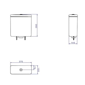 Indicada para banheiros residenciais e comerciais, a caixa deve ser fixada verticalmente à bacia sanitária, funcionando perfeitamente com pressão de 3 a 40 m.c.a.