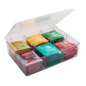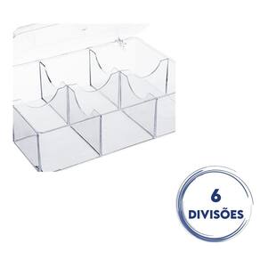 Caixa Acrílica Organizadora Sachês de Chá/Açúcar 6 Divisórias Domama
