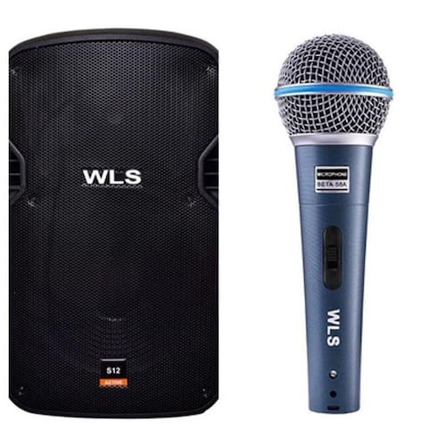 Caixa Acústica WLS S12 Ativa com Bluetooth + Microfone M58ADescrição caixa S12 AtivaA caixa WLS S12 Ativa é um equipamento de som que garante potência, projeção sonora, além de ótima definição. Oferece um alto falante de 12" de excelente qualidade, suportando grandes saturações e graves. Possui 250w 4 Ohms e 180w 8 Ohms.Oferece recursos interessantes como a entrada para USB para o técnico trabalhar com versatilidade.É uma caixa de som excelente para ser utilizada em igrejas, estúdios, apresentações musicais ou sonorização de eventos. Possui visor digital com controle remoto para ser regulada com maior comodidade e praticidade pelos técnicos de som.A caixa de som WLS S12 traz também entrada para microfone XLR e P10, saída de linha RCA e saída para caixa passiva Speakon, além de entrada de linha RCA. Excelente equipamento!Características1 Amplificador Analógico250 Watts 4 Ohms180 Watts 8 OhmsResposta de Frequência: 55Hz-20KHz2 ViasEqualizador gráfico de 5 bandas1 Alto Falante de 12"1 Driver TitânioAplicação P.A. e MonitorVisor Digital, Controle RemotoBluetooth, FM, USB, SD Card e Troca de PastaEntrada para microfone XLR / P10Entrada de linha RCASaída de linha RCASaída para caixa passiva SpeakonChaveador de Voltagem 110v / 220vDimensões: A 580 x L 350 x P 295 mmPeso: 11,030 KgDescrição Microfone M58AMicrofone dinâmico com cabo XLR/XLR de 5 metrosUnidirecionalImpedância Nominal: 290 Resposta de frequência: 50Hz a 16KHzSensibilidade: -51dBSensibilidade do campo magnético: 50HzGlobo de tela em açoPeso: 0,260 Kg