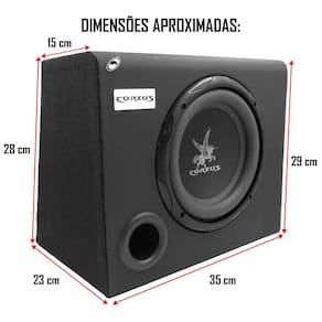 A CORZUS CXS 200 8? Universal é uma caixa amplificada de subgrave com potência total de 200 Watts RMS com amplificador digital de altíssima eficiência e baixo consumo, qualidade de áudio, resposta senoidal de 20Hz a 110Hz, filtro subsônico, proteção eletrônica e entrada de áudio com opção RCA ou via fio. Por ser uma caixa compacta é ideal para usuários que não querem ocupar espaço no porta-malas.